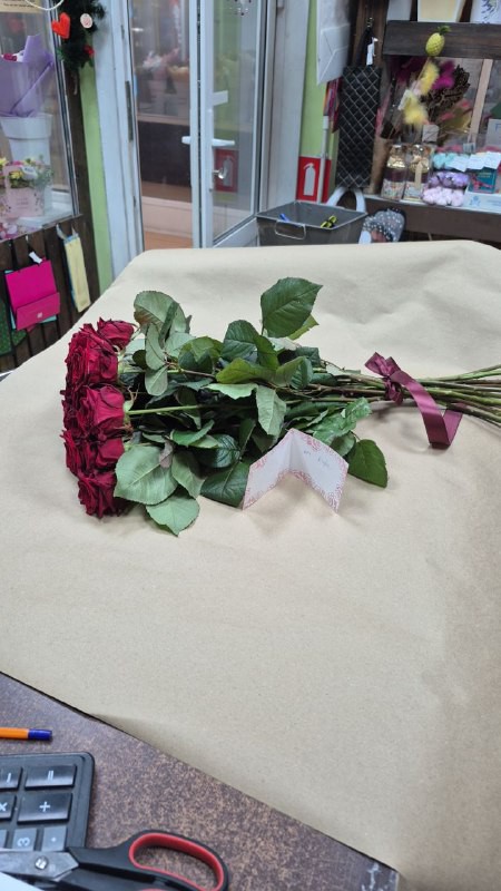 Оператор быстро перезвонила, грамотно оформила заказ, предложив свои варианты.В назначенное время цветы я забрала из указанного мной адреса магазина, т.к был самовывоз . Розы были просто шикарные, свеженькие, оформленные в букет под ленту и уложены в бумажную упаковку.