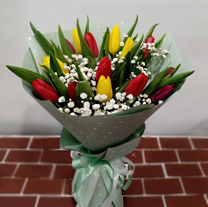 Тюльпан 21 шт с гипсофилой