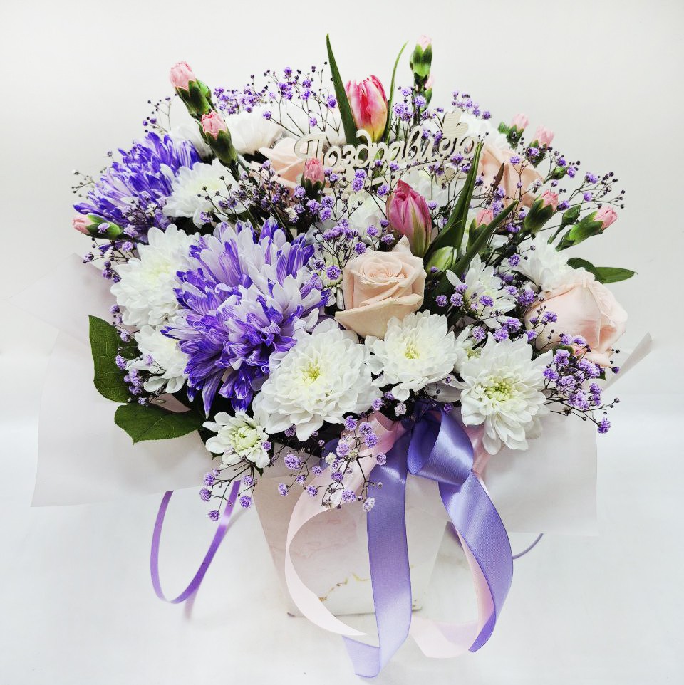 Состав цветочной композиции может изменяться в зависимости от наличия товара и от Ваших предпочтений. Наш консультант поможет Вам сделать правильный выбор.