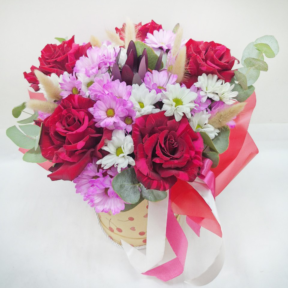 Состав цветочной композиции может изменяться в зависимости от наличия товара и от Ваших предпочтений. Наш консультант поможет Вам сделать правильный выбор.